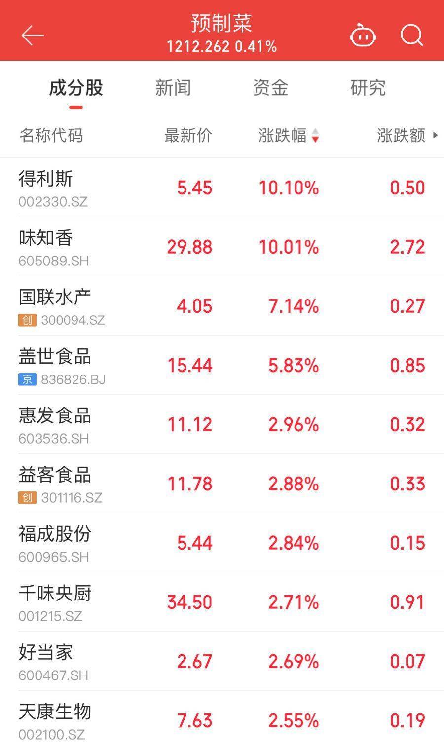 9月15日实盘配资app,罗永浩与西贝餐饮的“预制菜纷争”余波未平,但资本市场已做出反应。同花顺数据显示,预制菜(885951)指数开盘涨0.41%,得利斯(002300.SZ)、味知香(605089.SH)开盘涨停,国联水产(300094.SZ)、盖世食品(836826.SH)涨超5%,千味央厨(001215.SZ)、好当家(600467.SH)等跟涨。